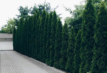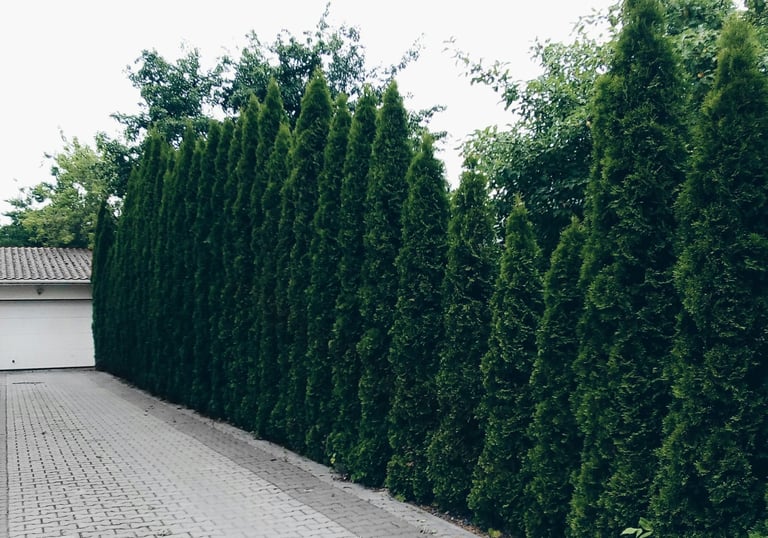 Taille soignée de haies de cèdres pour embellir votre cour arrière.